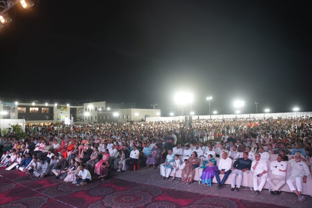 इस अवसर पर क्षेत्र के हजारों की संख्या में अभिभावक एवं विद्यार्थी उपस्थित थे। जया किशोरी जी ने अपनी ओजस्वी वाणी में प्रेरक उद्बोधन देते हुए कहा कि आधुनिक शिक्षा पद्धति और नैतिक मूल्यों के बीच संतुलन कायम रहना अत्यंत जरूरी है।बच्चे स्कूलों में विद्यार्जन करते हैं लेकिन सुसंस्कार तो परिवार से ही मिलते हैं। बच्चों को संस्कारित करना माता पिता की जिम्मेदारी है। जया किशोरी जी ने कहा कि वर्तमान समय में शिक्षा प्रणाली केवल रोजगार पाना और धन कमाना सिखा रही है।लेकिन बच्चों को एक संस्कारवान और जिम्मेदार नागरिक बनना नहीं सिखाया जा रहा है। उन्होंने कहा कि पुराने समय में डिग्री हासिल करने वाला ज्ञान भले ही कम था, लेकिन बच्चे और युवा बड़ों के प्रति आदर का भाव रखते थे। बच्चों को परिवारों के धार्मिक और नैतिक मूल्यों की प्रेरणा घर और स्कूल दोनों जगह मिलती थी। लेकिन वर्तमान समय में बच्चों को अधिकांश स्कूलों में शिक्षा के साथ संस्कार नहीं मिल पा रहे हैं। जया किशोरी जी ने अभिभावकों को नसीहत देते हुए कहा कि बच्चों को सुसंस्कारित करने की शुरुआत घर से ही होनी चाहिए। क्योंकि बच्चा वही सीखता है जो वह अपने माता-पिता को करते हुए देखता है। उन्होंने कहा कि यदि बच्चा गलती करे तो उसे मारने-पीटने के बजाय उसे क्षमा करें और धैर्यपूर्वक विश्वास में लें एवं उसका भय दूर करें। ताकि बच्चा भयभीत होकर गलत कदम नहीं उठाए। उन्होंने कहा कि बच्चों की जिद पूरी करने के बजाय उसे सही-गलत का अंतर समझाएं। जिद पूरी नहीं की तो बच्चा थोड़ी देर रोएगा, लेकिन यदि संस्कार नहीं दिए तो बच्चा जीवन भर रोएगा। उन्होंने विद्यार्थियों से कहा कि जीवन में केवल फर्स्ट आना जरूरी नहीं है, बल्कि ज्ञान अर्जित कर समाज में सकारात्मक बदलाव लाना ही असली सफलता है।