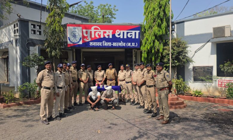 दिनांक 15.03.2026 को थाना प्रभारी सनावद उनि. श्री धर्मेन्द्र यादव के नेतृत्व में थाना सनावद की पुलिस टीम के द्वारा रात्रि गश्त के दौरान अनाज मंडी सनावद क्षेत्र में आने-जाने वाले वाहनों की चेकिंग की जा रही थी । इसी दौरान पीरानपीर रोड अनाज मंडी के पास एक बुलेट मोटरसाइकिल पर सवार दो व्यक्ति तेज गति से आते दिखाई दिए । पुलिस द्वारा चेकिंग हेतु रोकने का प्रयास करने पर दोनों व्यक्ति मोटरसाइकिल लेकर भागने लगे, जिससे संदेह होने पर पुलिस टीम द्वारा पीछा कर उन्हें पकड़ लिया गया ।