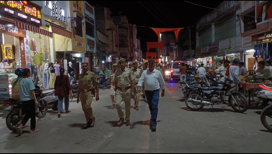 गुरुवार शाम थाना अधिकारी महेंद्र कुमार के नेतृत्व में मुख्य मार्गों पर फ्लैग मार्च निकाला गया। इस दौरान आमजन से शांति बनाए रखने और यातायात नियमों का पालन करने की अपील की गई।
