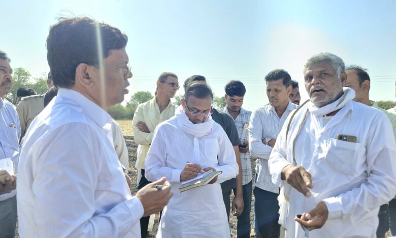 विधायक सचिन बिरला ने किया अग्निकांड प्रभावित खेतों का निरीक्षण