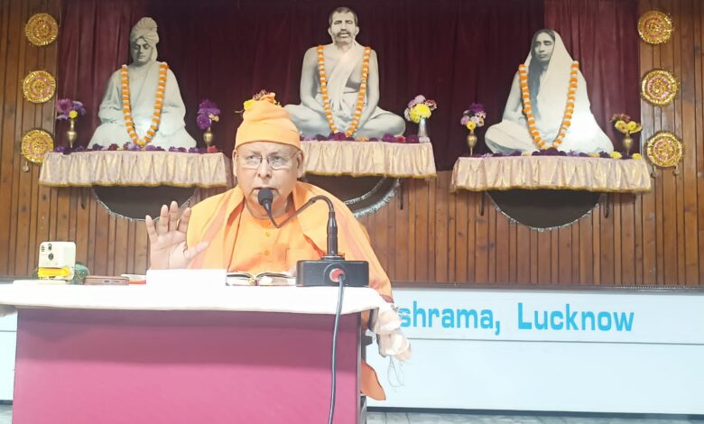 अक्षय तृतीया के पावन अवसर पर प्रातः कालीन सत् प्रसंग रामकृष्ण मठ लखनऊ के अध्यक्ष स्वामी मुक्तिनाथानंद ने बताया कि यह विचार कि “ब्रह्म सत्य है और जगत मिथ्या” वेदांत दर्शन का एक अत्यंत गूढ़ और गहन सिद्धांत है। श्री रामकृष्ण के वचनों के आधार पर इस विषय को सरल और समझने योग्य उदाहरणों के माध्यम से स्पष्ट किया है। इस शिक्षण का मुख्य उद्देश्य यह बताना है कि परम सत्य केवल ईश्वर (ब्रह्म) है, जबकि यह दृश्य संसार केवल एक आभास या माया है।