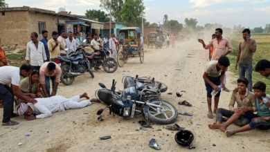 दो बाईकों की टक्कर में पति पत्नी घायल